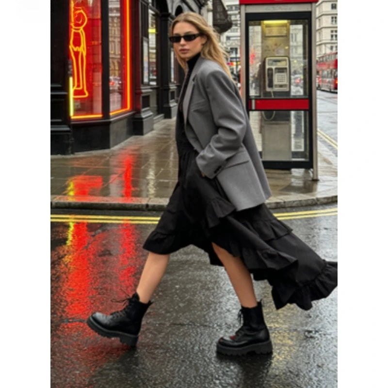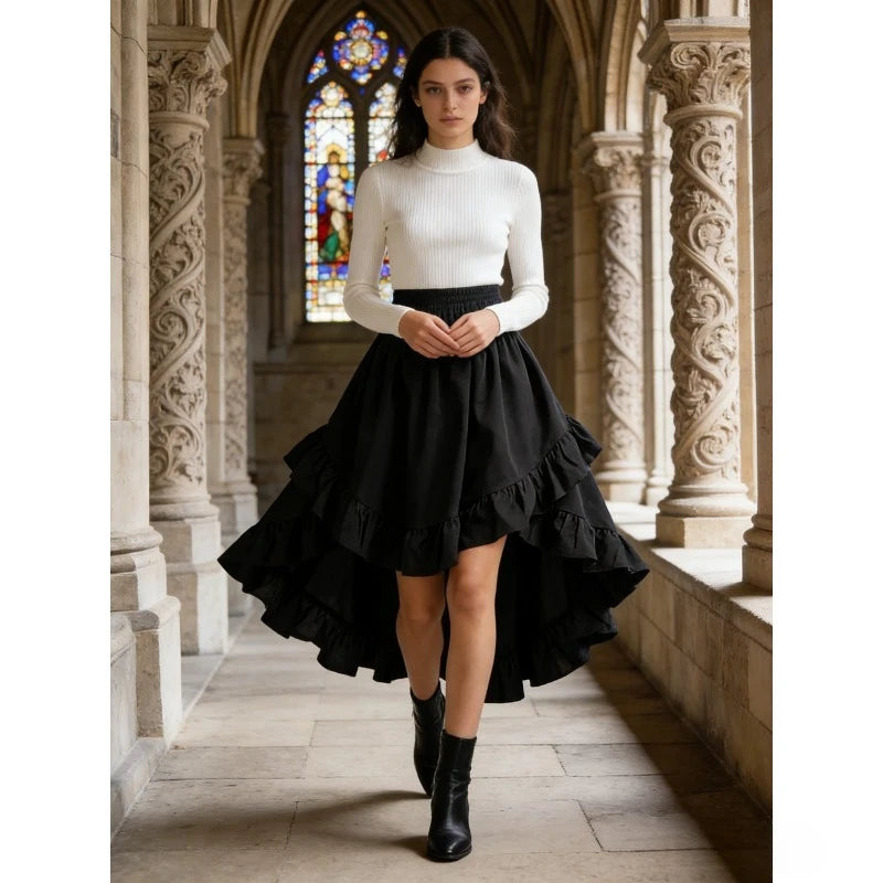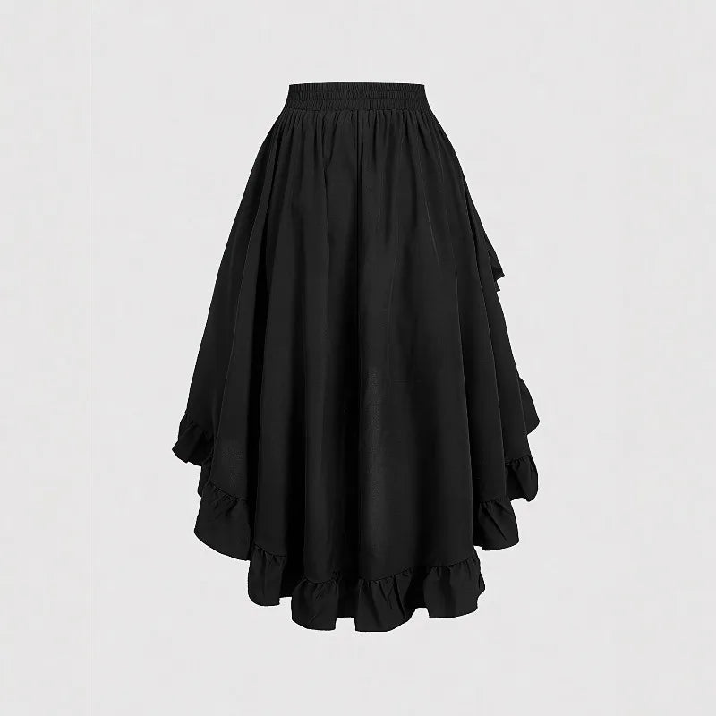 1pcs Women Fashion Versatile Elastic Waist Asymmetrical Ruffle Skirt Black Irregular Hem Flared Half Skirt