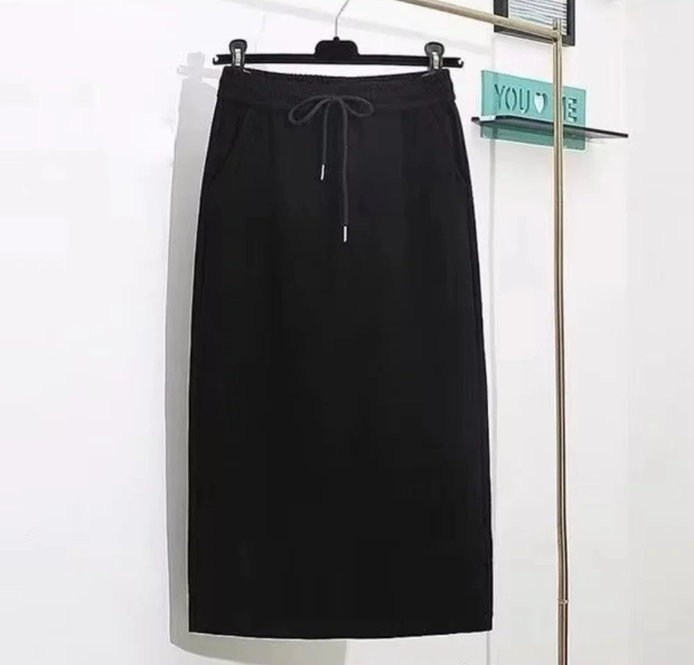 New Women's Soft Touch Silk like Midi Skirt High Waist Elastic Belt Fashionable Women's Skirt Elegant Women