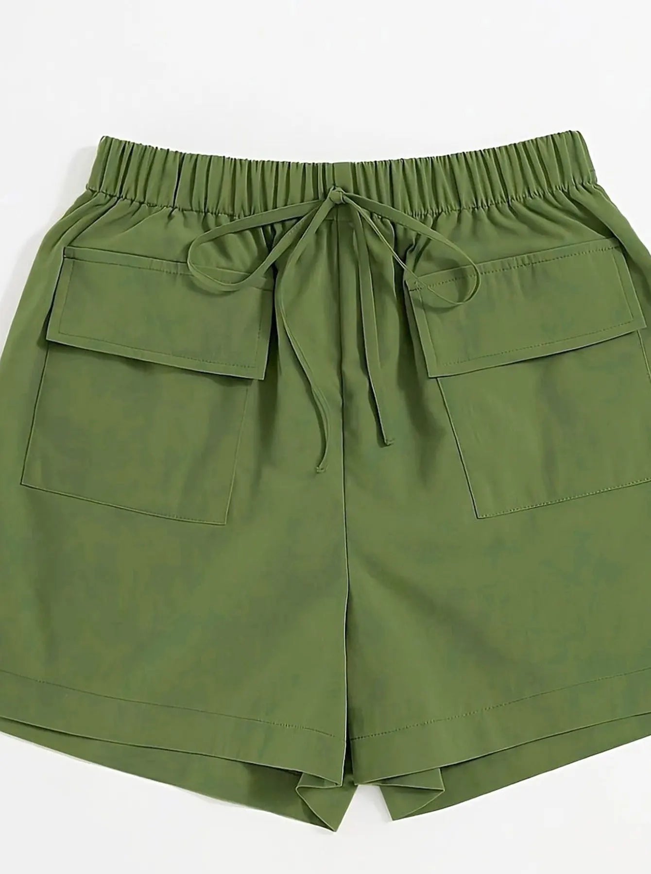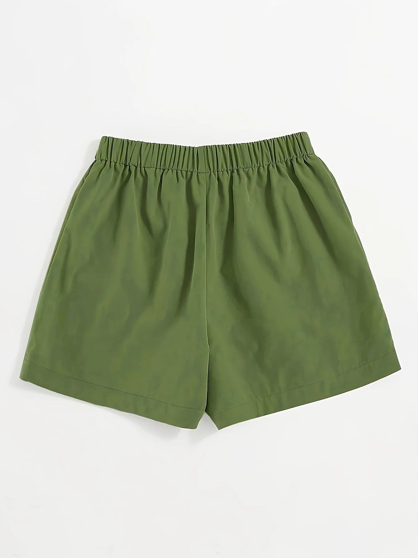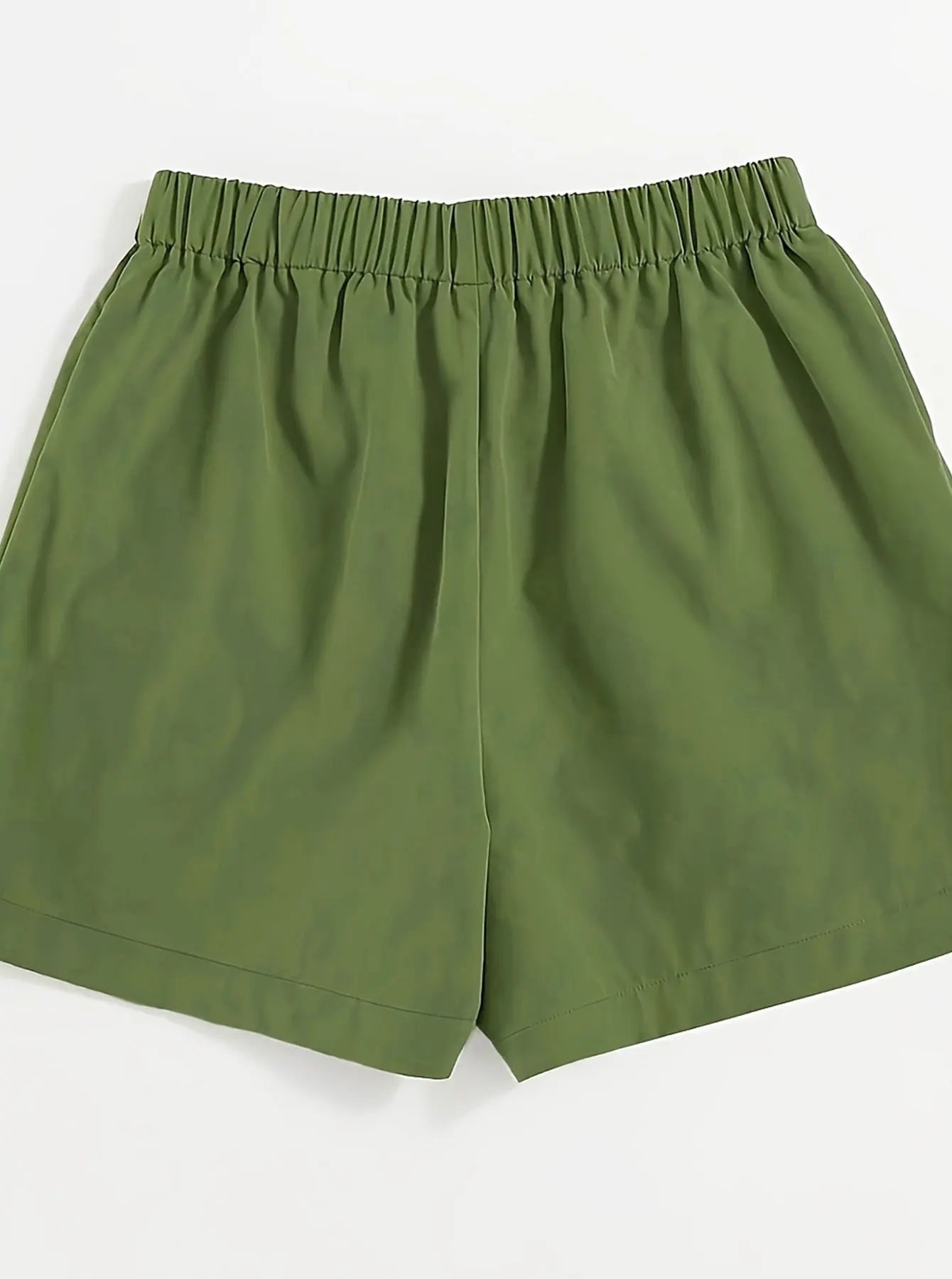 Olive drab Women's Oversized Woven Solid Color Casual Shorts Comfortable Loose Fit High Waist Knee-Length Summer Fashion Olive d