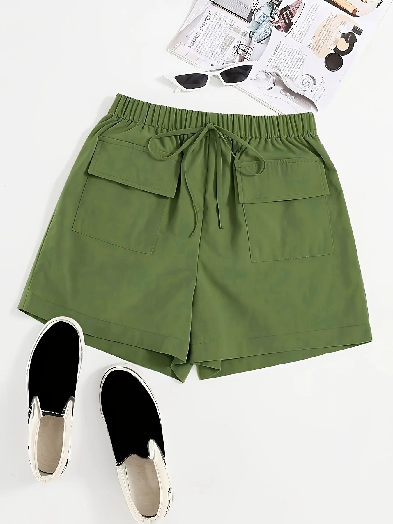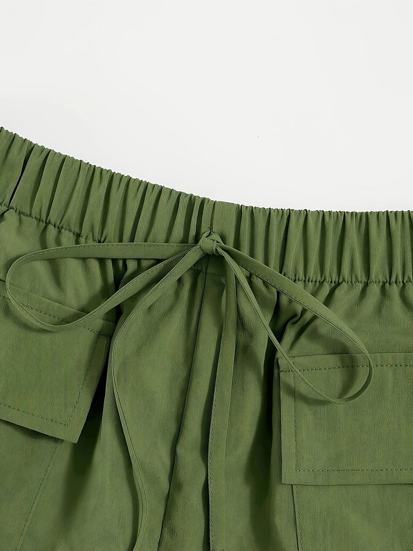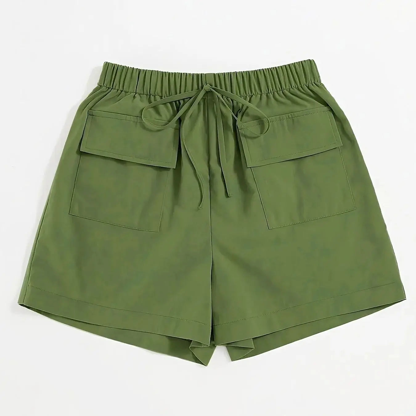 Olive drab Women's Oversized Woven Solid Color Casual Shorts Comfortable Loose Fit High Waist Knee-Length Summer Fashion Olive d