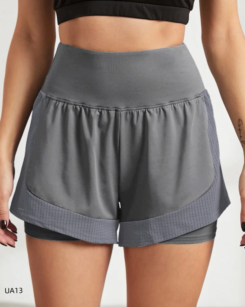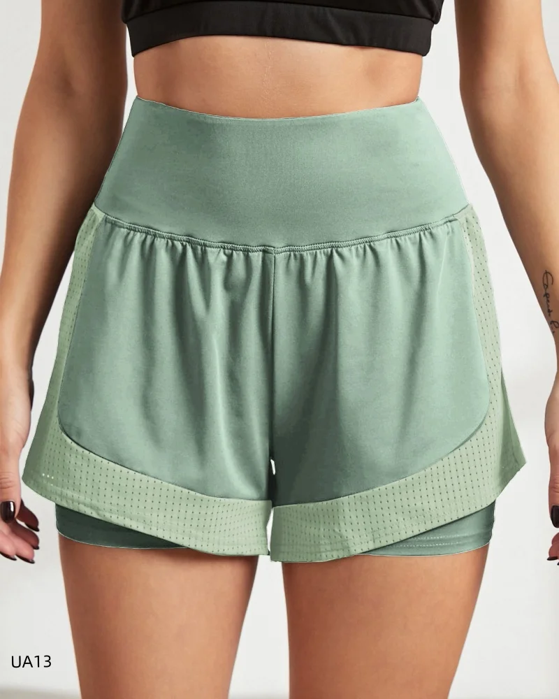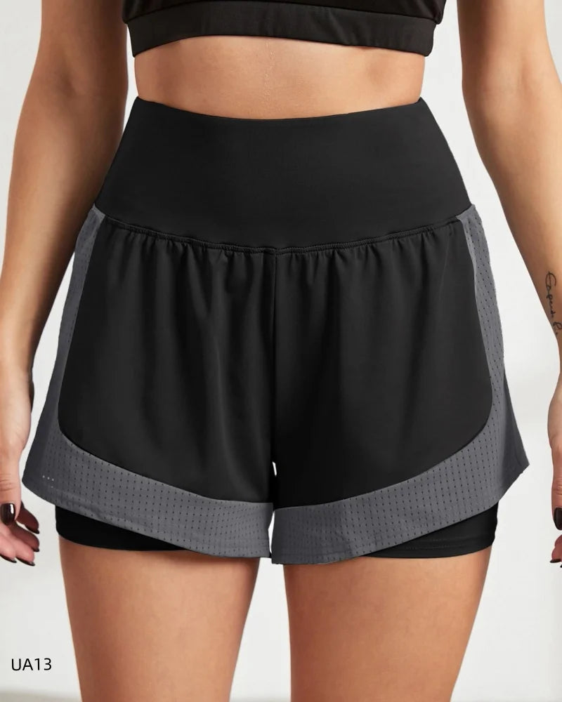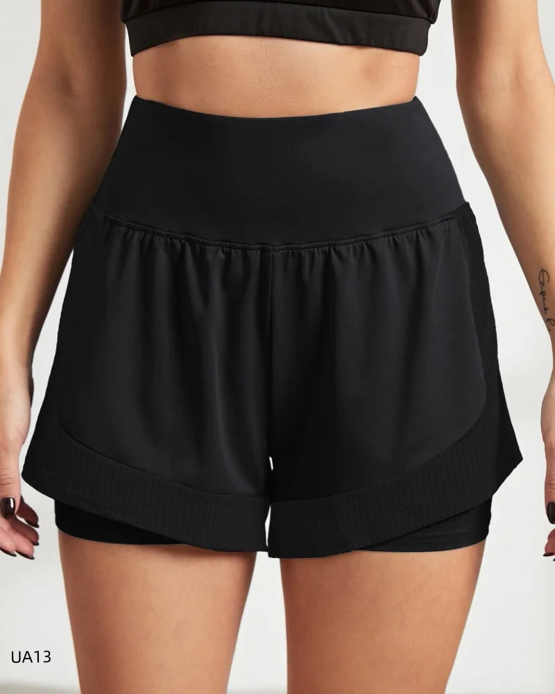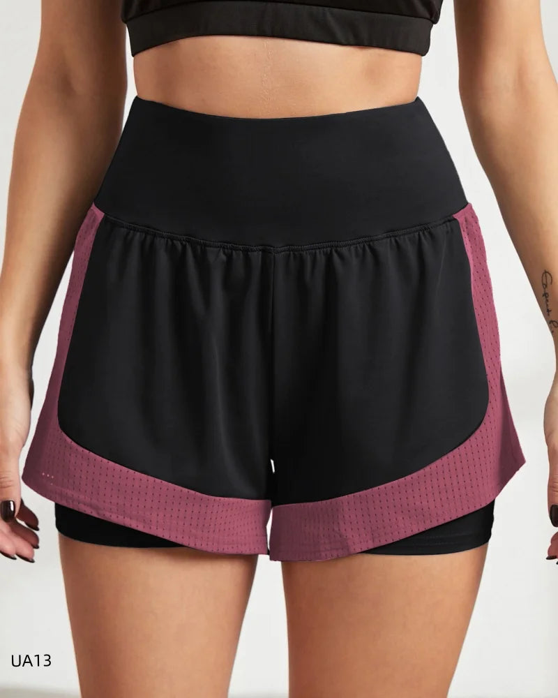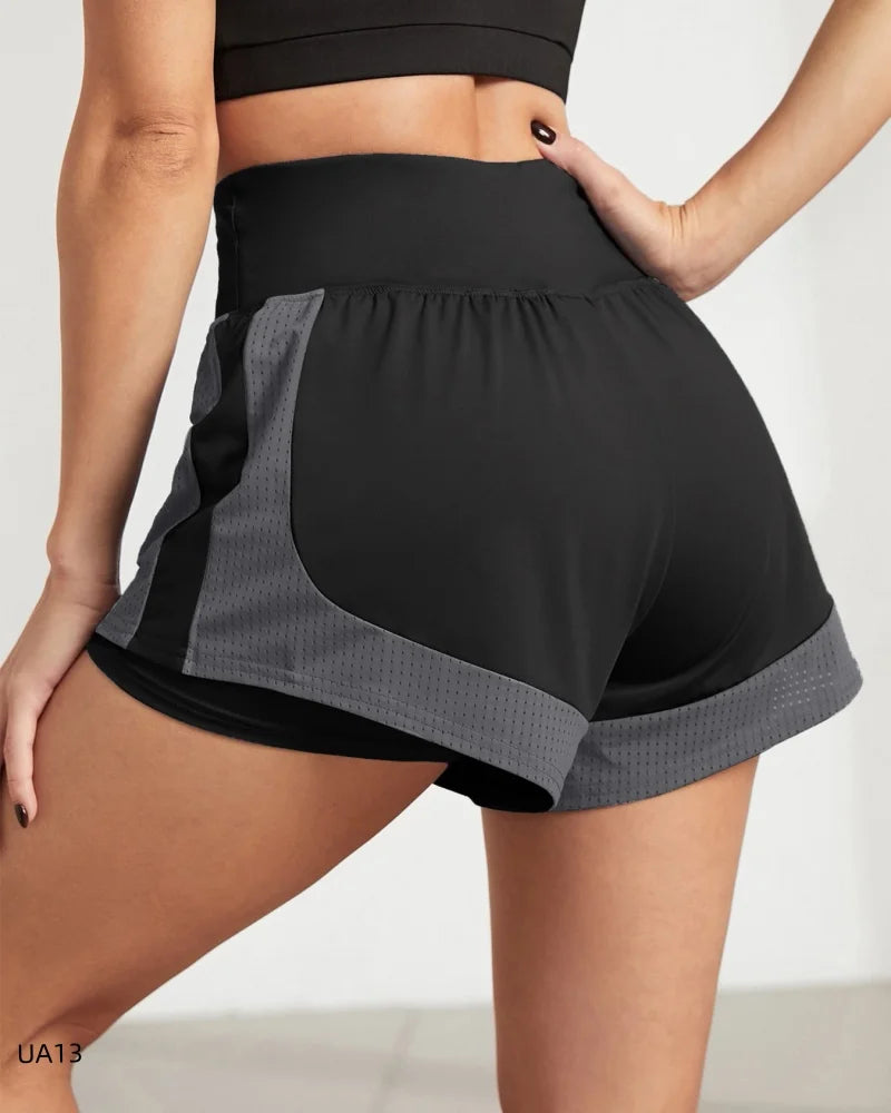 Women's High-Waist Elastic Sports Shorts 2-in-1 Quick-Dry Breathable Yoga Running Training Fitness Shorts